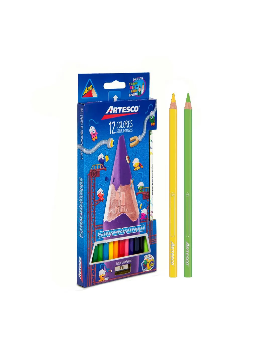 LAPIZ ARTESCO TRIANG LARGO X 12 COL SUPER PUNTA 4MM C/PROM