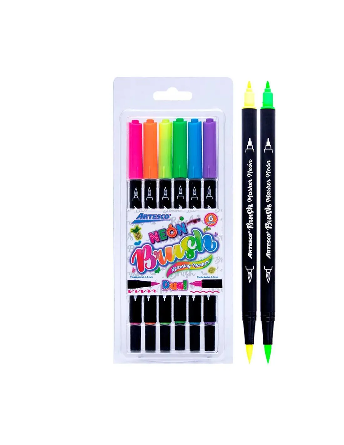 MARC ARTESCO PINCEL DOBLE PUNTA NEON X 6 COL