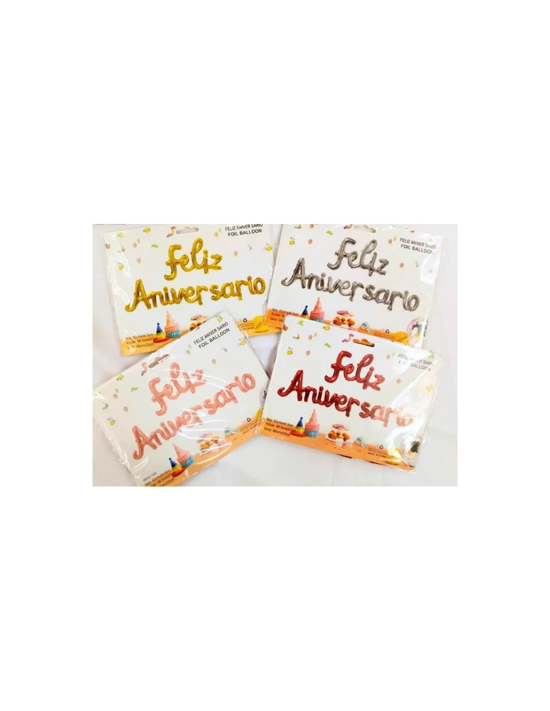 GLOBO ALUMINIO LETRAS FELIZ ANIVERSARIO C/SURTIDOS