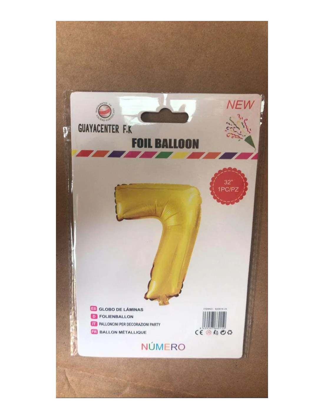GLOBO METALICO 32 NUMERO 7 DORADO