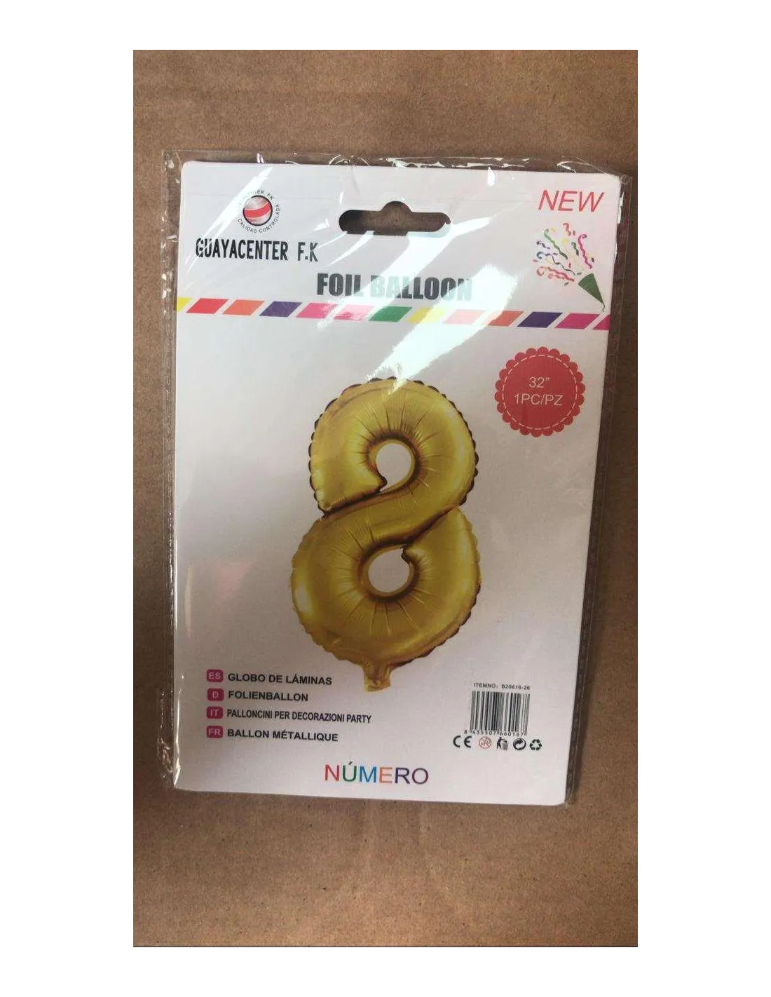 GLOBO METALICO 32 NUMERO 8 DORADO