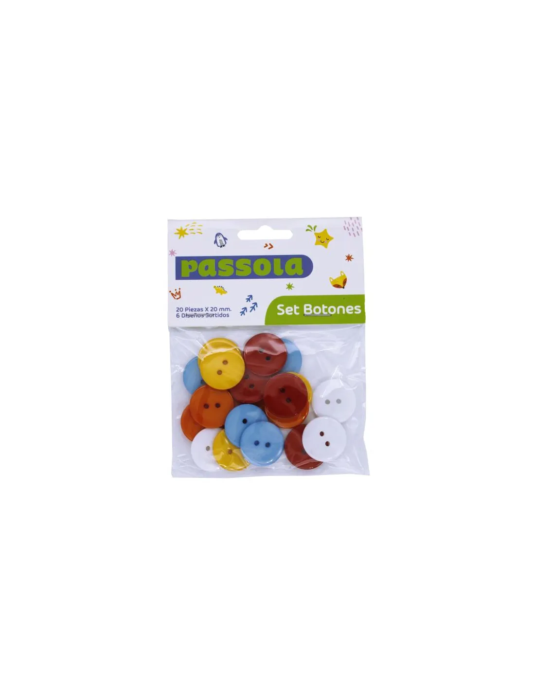 BOTONES PASSOLA LLANOS 20 PZAS 20MM COL/SURT