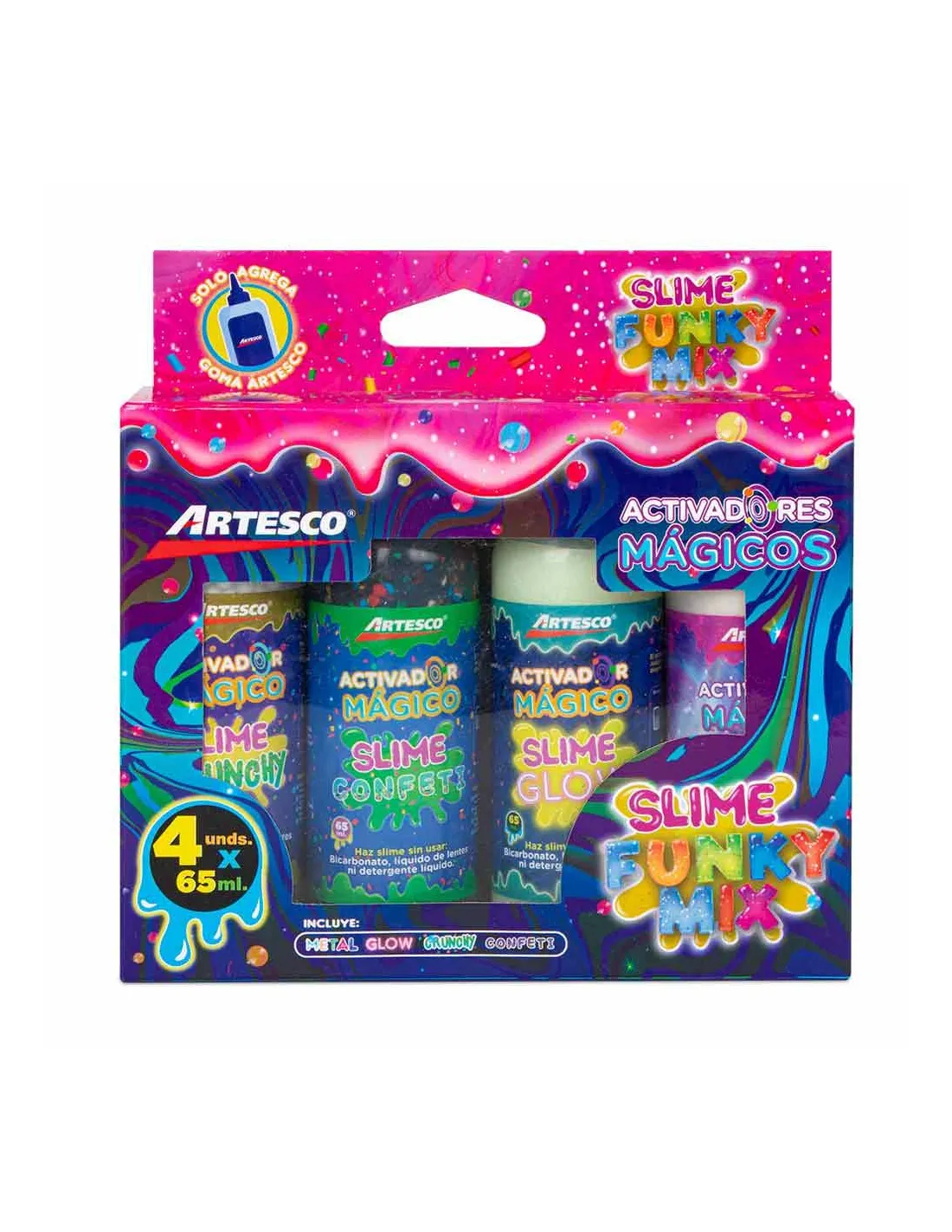 SET ARTESCO FUNKY MIX ACTIVADOR SLIME 65ML X4UND