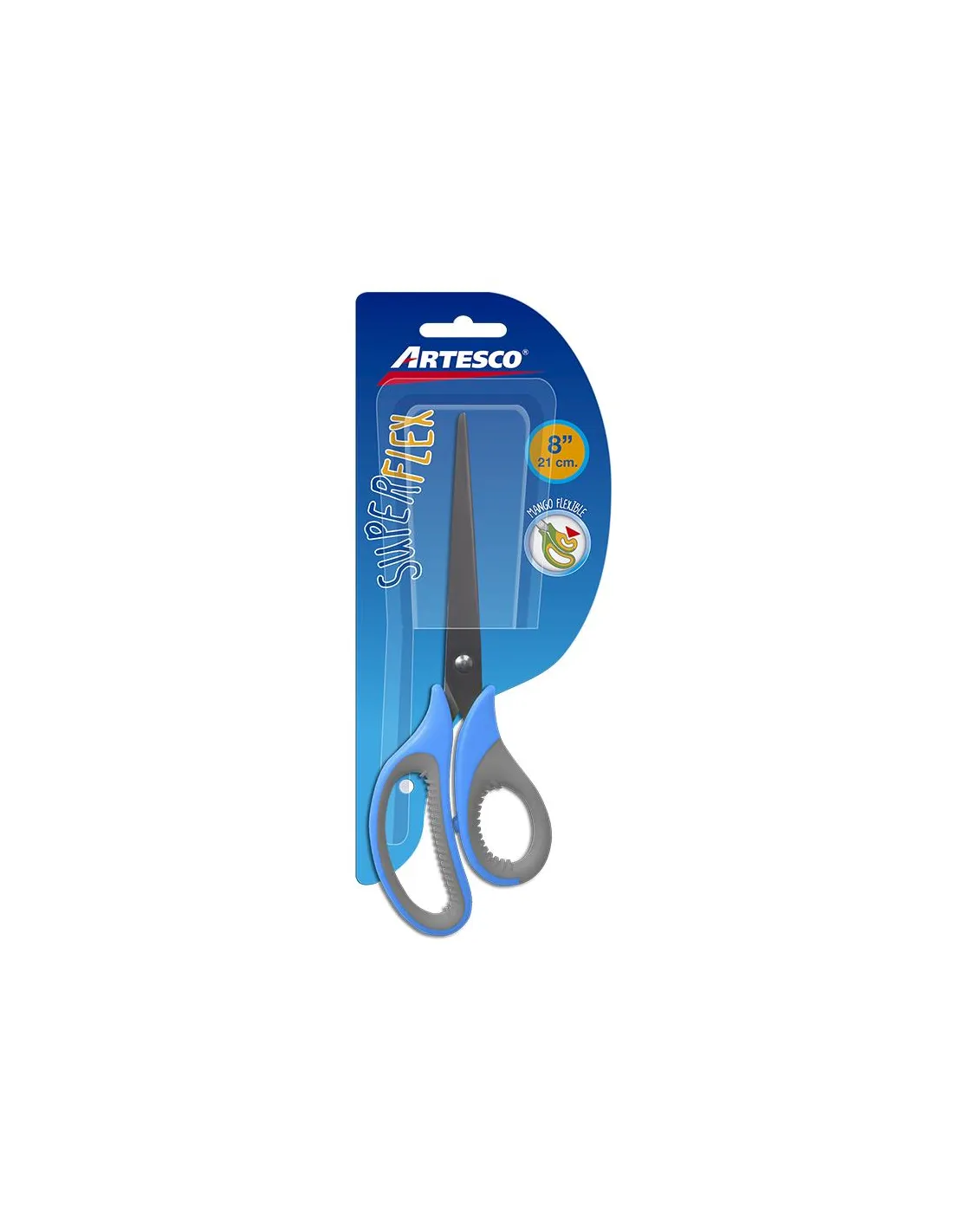 TIJERA ARTESCO SUPERFLEX OFICINA 8 PULG AZUL/GRIS/ROSADO