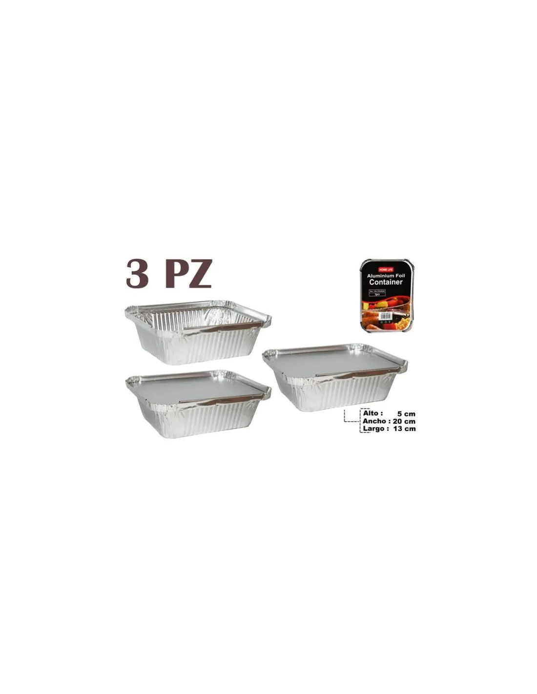 MOLDE DESECHABLE ALUMINIO X3 PZ C/TAPA 5X20X13CM REF. AF1960
